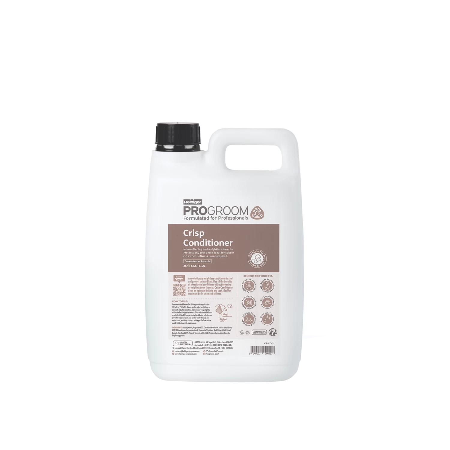 Crisp a unique NON- Softening Conditioner that gently acidifies and seals the cuticle layer and offers protection to skin and coats against damage caused from pet styling and other harsh elements. This new revolutionary conditioner leaves coats crisp and fluffy without the heaviness often caused by normal conditioners.